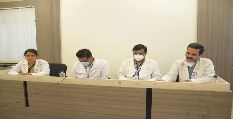The CME on soft embalming was held on 21-10-2022 at 9.30am in Medical education unit hall. The meeting started with welcome speech by Dr Veena S Harwalkar, Assistant professor in anatomy and CME ‘Joint secretary’. The Inaugural function was witnessed by Dr Aravind V Patil Principal, Dean faculty of medicine, Dr Manjunath Kotennavar Professor Dept of Surgery, the guest of honour. Resource person and special Invite Dr Sanjeev Kolagi, Professor & HOD Dept of Anatomy, S N Medical college, Bagalkot and special invite Dr B M Bannur Ex Professor & HOD dept of anatomy BLDEDU’s Shri B M Patil Medical college, and presided. by Dr R S Bulagouda Prof & HOD Dept of Anatomy BLDEDU’s Shri B M Patil Medical college E-lamping of lights was done by the dignitaries on the dias.