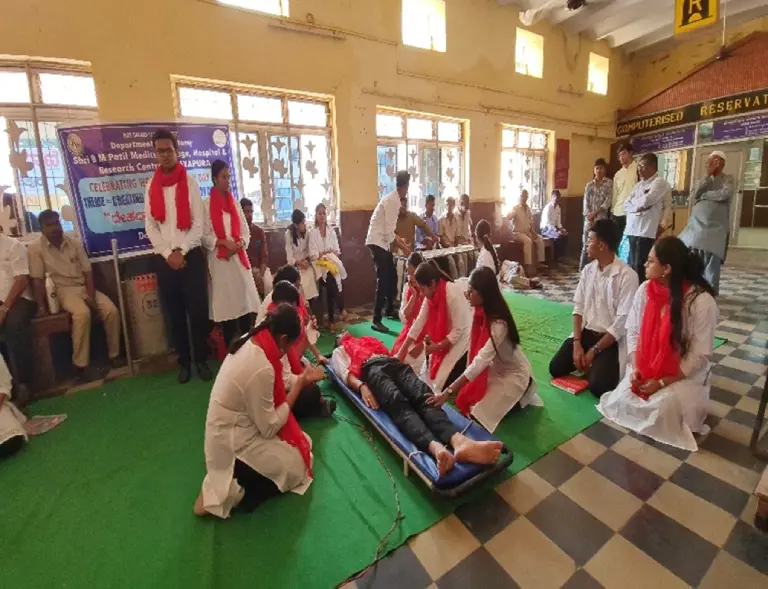 5. At 2.30pm the Ganga group performed the street play in Hindi language in railway station. The event ended with vote of thanks By Dr R S Bulagouda Prof & HOD dept. of Anatomy