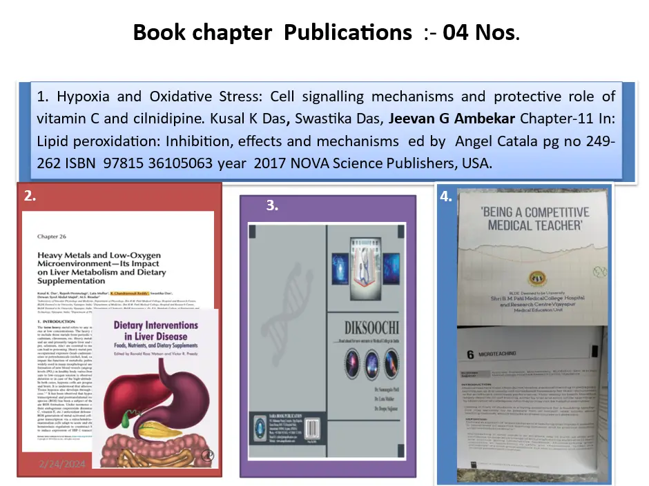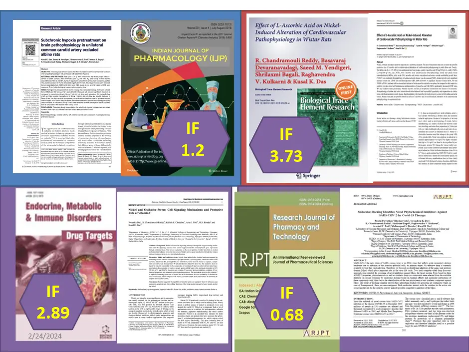 1.       Influence of antioxidant vitamin C (L-ascorbic acid) on hypoxia alteration of VEGF gene expression in male diabetic rats with or without exposure to heavy metal nickel. Dr. Chandramouli Reddy Dr B B Devaranavadagi 2015 2020 Awarded PhD