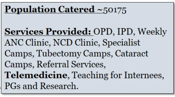 Health Centers(owned)- RHTC Ukkali, UHTC Chandabawdi, RHCs Shivanagi
