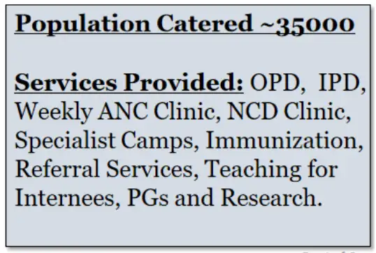 Implementation of National Health Programmes along with district health personnel at both the centres.