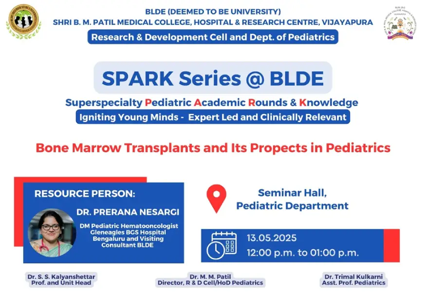 SPARK Lecture series  topic Bone Marrow transplant and Its  Prospects in pediatrics  Dr. Prerana Nesaragi Visiting Consultant in pediatrics &BMT GLENEAGLES BGS hospital Bengaluru