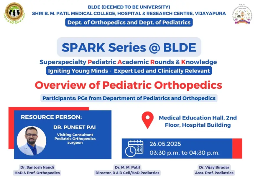 SPARK Lecture series topic – "Overview of Pediatric Orthopedics" by Dr. Puneeth Pai, Pediatrics Orthopaedics surgeon, Visiting Consultant in pediatrics, Narayana health city Bengaluru