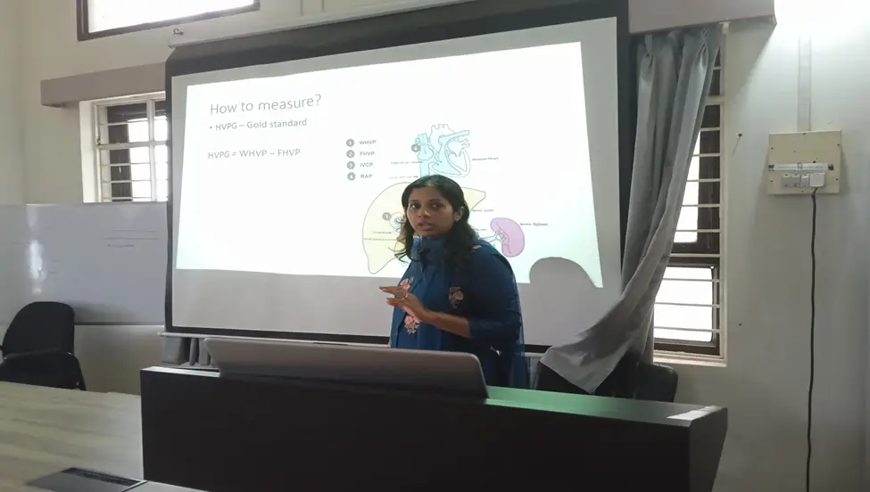 On 15th July 2025, the Department of Pediatrics organized a session under the SPARK Lecture Series on the topic “Portal Hypertension – Part II” in pediatrics, delivered by Dr. Ashitha A, Visiting Consultant in Pediatrics and Consultant in Pediatric Hepatology and Liver Transplant. In the morning session, Dr. Ashitha visited the OPD and examined a total of four patients. In the afternoon, from 12:00 pm to 1:00 pm, she delivered her lecture in the Department of Pediatrics, attended by ten postgraduates and the department staff. The session concluded with a discussion on ideas for her next visit.