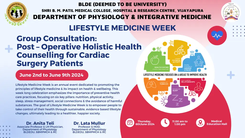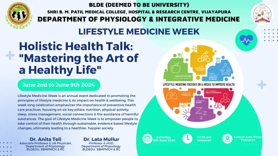 We are excited to announce the celebration of ‘Lifestyle Medicine Week (LM Week)’ from 2nd June to 9th June 2024. This event aims to promote the importance of Lifestyle choices in the prevention, treatment & management of chronic diseases. It is an excellent opportunity for staff, students & public to engage in activities that enhance our understanding & practice of lifestyle medicine.