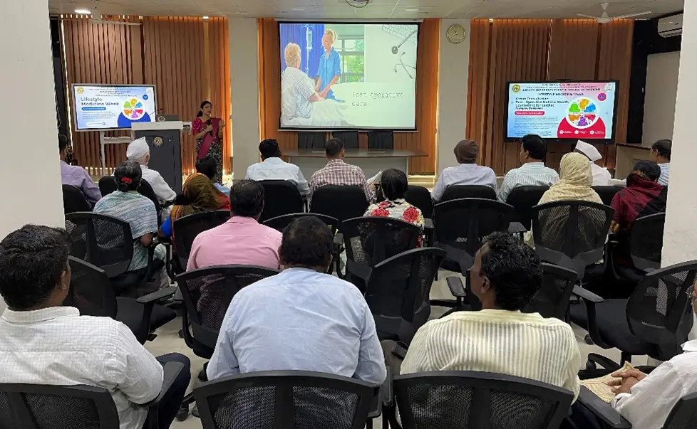 Holistic health talk was organized for the workers of Santosh Auto wings, Vijayapura on 9th June 2024 at 10:30 AM. Awareness regarding six pillars of Lifestyle Medicine was delivered & importance of holistic health was highlighted. The event was attended by 100 participants.