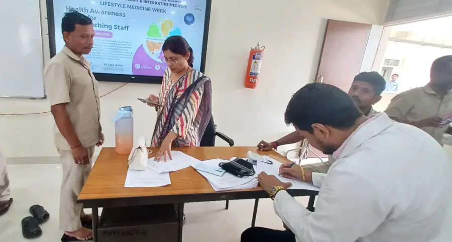 Health Awareness camp was conducted in demo room at department of physiology on 7th June 2024 & 65 participants attended from pre, para, college office, university office & IT Departments. Various parameters including body composition analysis, BP & Blood Sugar measurement, BMI & Waist circumference were done. Health counselling for high blood pressure, high sugars & high body fat was done.