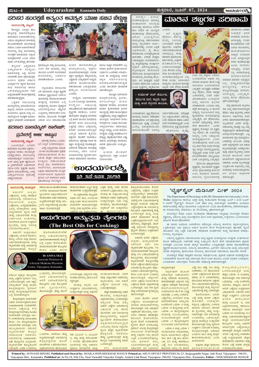 4. Radio Talk – Lifestyle Modifications for healthy living 5th June 2024 Wednesday - 5 to 5.30 pm Akashavani Kendra, Vijayapura